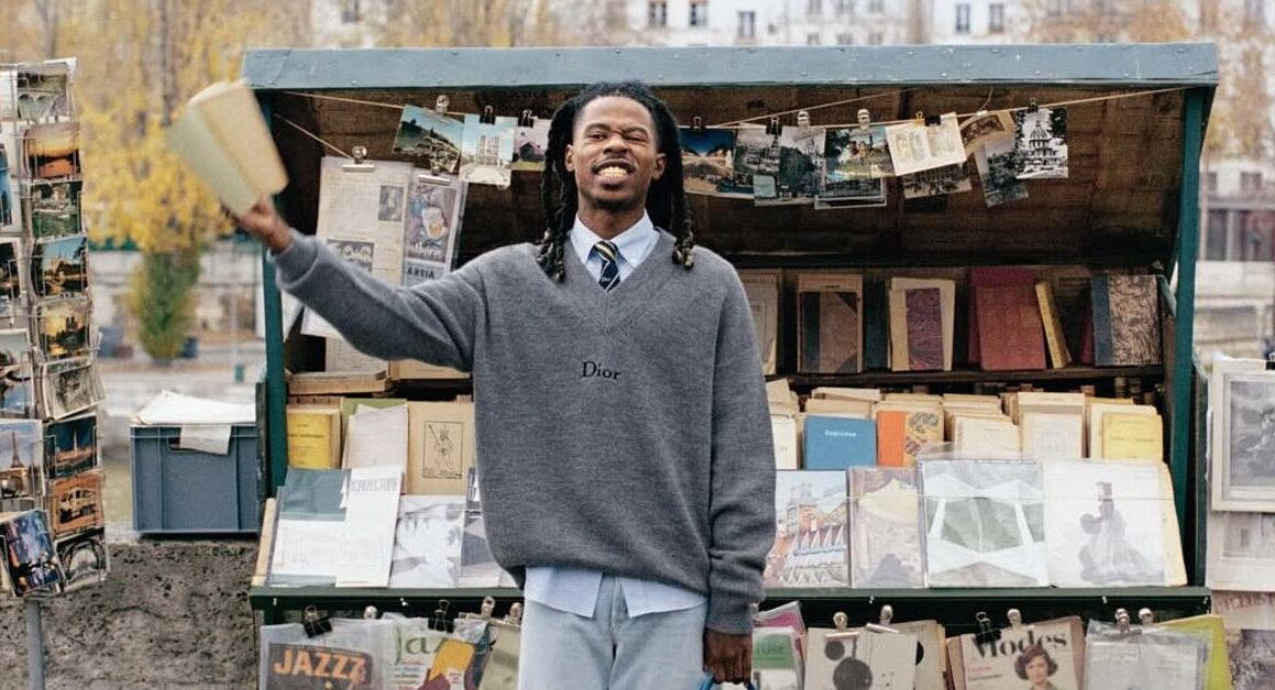 Taylor, a dancer‑turned‑literary creator with a passionate community of readers on Instagram, was featured in the photo campaign shot along the bouquinistes of the Seine in Paris. In campaign imagery, he’s seen engaging with classic texts while holding one of the new Book Cover Totes inspired by Ulysses by James Joyce, embodying the collection’s theme of fashion as a conduit for cultural storytelling.