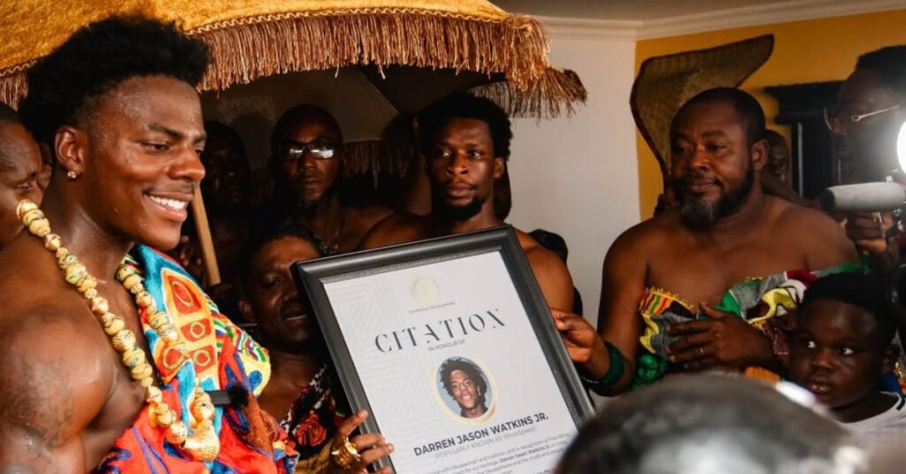 The highlight of Speed’s stay took place at the Akropong Palace in the Eastern Region, where traditional leaders honoured him with the Akan name “Barima Kofi Akuffo.” The name carries deep cultural significance — Barima symbolises bravery and strength, Kofi reflects his day-of-birth name in Akan tradition (Friday), and Akuffo represents a respected family lineage associated with the area.