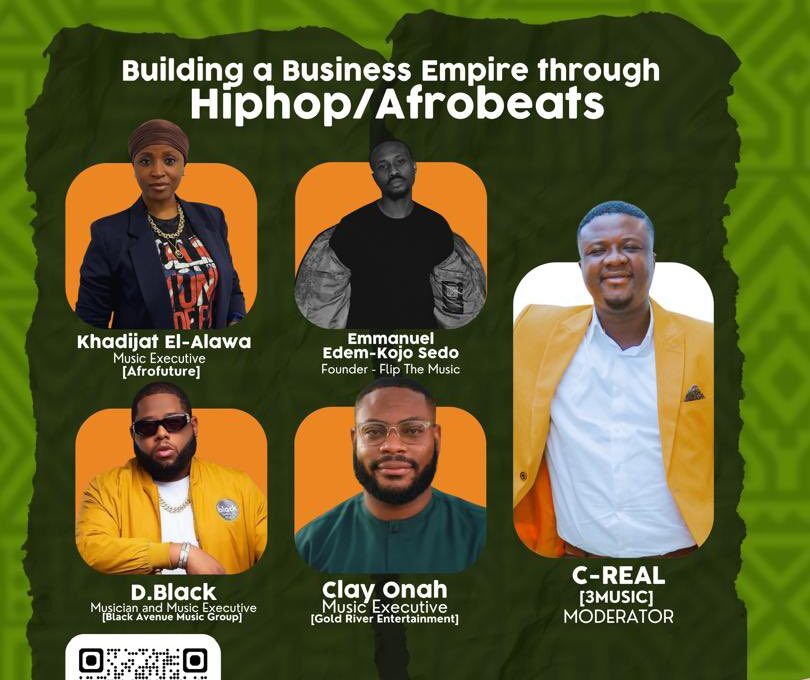 Featuring Khadijat El-Alawa (Head of Talent at Afrofuture), Clay Onah from Gold River Entertainment, Emmanuel Edem Kojo Sedo, founder of Flip Music, and Desmond Blackmoore, founder of Black Avenue Muzik. The session is moderated by C-REAL, guiding a real, unfiltered conversation around what it takes to grow in today’s music industry.